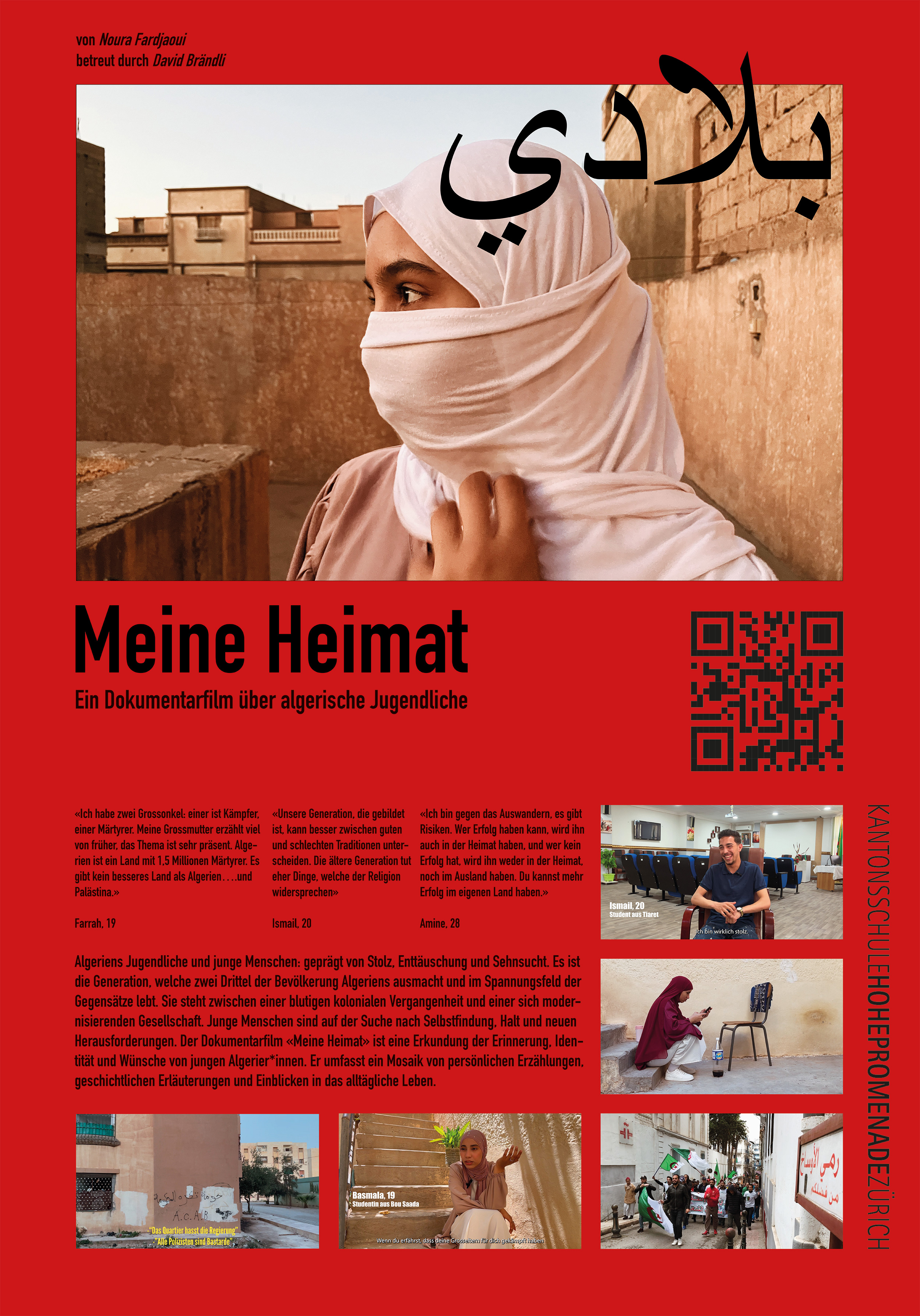 Die Maturaarbeit untersucht die Lebensrealität algerischer Jugendlicher anhand eines Dokumentarfilms. Die zentrale Fragestellung lautet: Welche historischen Ereignisse, gesellschaftlichen Spannungen und Herausforderungen prägen das Leben junger Algerier*innen? Ziel war es, ihre Identität, ihre Beziehung zu Tradition und Moderne sowie ihre Zukunftsperspektiven zu erfassen. Dafür wurden qualitative Interviews mit Jugendlichen mit unterschiedlichen Hintergründen geführt. Ergänzt wurden diese durch Experteneinschätzungen und historischen Analysen.