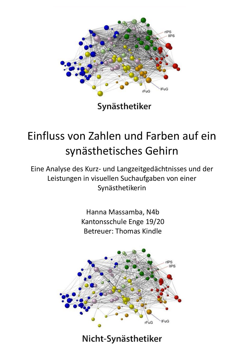 Hanna Massamba analysierte die Aufnahmefähigkeit des Kurz- und Langzeitgedächtnisses und die Leistungen in visuellen Suchaufgaben der 17-jährigen Synästhetikerin P im Ver­gleich zu einer Kontrollgruppe. P hat eine der häufigsten Formen der Synästhesie, die Graphem-Farb-Synästhesie, mittels derer sie geschriebene Zahlen automatisch mit einer dazugehörigen Farbe verknüpft.